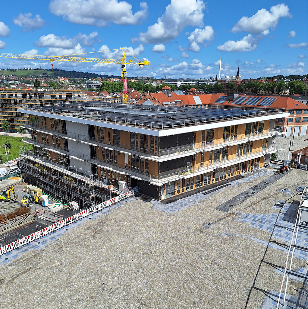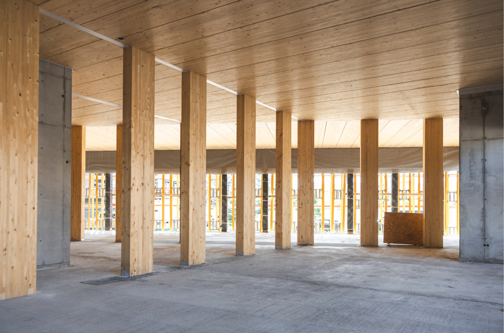 Zukünftige Projekte ähnlicher Größenordnung dürften einfacher realisierbar werden: Am 1. Januar 2023 trat eine neue Verwaltungsvorschrift Technische Baubestimmungen (Vwv TB) in Kraft, die neue Beurteilungsmöglichkeiten für feuerbeständige Holzbauweisen in den Gebäudeklassen 4 und 5 bietet. Diese Richtlinie galt noch nicht, als die Baugenehmigung erteilt wurde. Auch wenn der Holzhybridbau in der Gebäudeklasse 5 weiterhin einen bürokratischen Mehraufwand mit sich bringt, dürften Folgeprojekte somit günstiger werden.