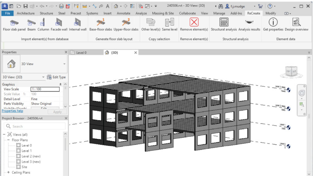 Im ReCreate-Projekt wurde dafür das Revit-Plugin ReCreate Studio entwickelt [11]. Es erlaubt den Import vorhandener Stahlbetonbauteile aus einer Datenbank in neue Modelle und prüft automatisiert deren Tragfähigkeit. Für Geschossdecken schlägt das Tool passende Layouts mit einachsig spannenden Einfelddeckenelementen aus dem Bestand vor (Bild 5).