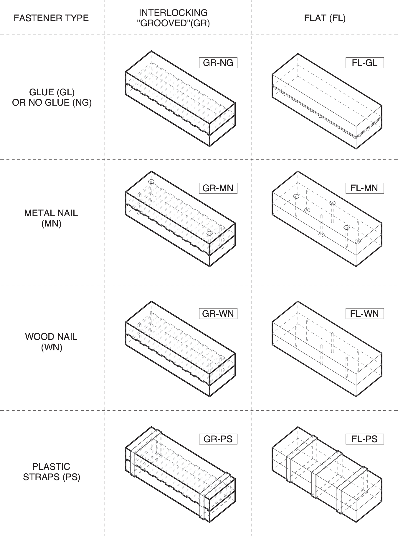 Das Forschungsteam untersuchte 17 verschiedene Oberflächenmuster und 24 Tiefen für mechanische Verbindungen zwischen Holzlamellen. Dabei kamen unterschiedliche Verbindungstechniken zum Einsatz – darunter Metallnägel, Holznägel und Kunststoffbänder – und wurden in Biegeversuchen hinsichtlich ihrer Tragfähigkeit getestet.