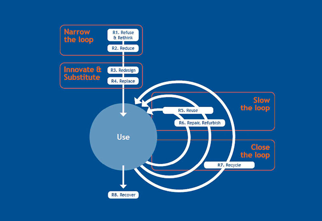 Redesign heißt, Produkte von Grund auf für den Kreislauf zu gestalten – modular, langlebig, reparierbar und so konstruiert, dass Materialien am Ende sortenrein zurückgewonnen werden können. Replace adressiert den gezielten Ersatz von Stoffen, die Zirkularität verhindern: toxische, materialschädigende oder nicht rückholbare Komponenten.