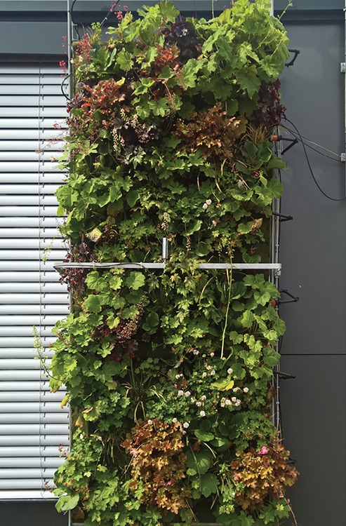 • zwei wandgebundene Systeme (Vertiko GmbH, Buchenbach und Verticalgreendesign VGD GmbH, Berlin, s. Bild 3)
