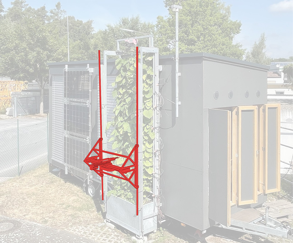 Noch immer scheuen viele Bauherren und Planer im Fassaden­bereich sowohl den Einsatz von Begrünung als auch von Photovoltaik, häufig begründet durch deren hohen Komplexitätsgrad und die mitunter schwierige Koordination der zusätzlichen Gewerke. Das liegt bei den Grünfassaden (insbesondere wandgebundene Systeme) auch an hohen Erstinvestitionen und erheblichen Folgekosten für Pflege und Wartung. Daher wurde in dem Forschungsprojekt „GreenFaCe“ der Einsatz moderner (teil-)automatisierter Systeme untersucht und eine Konzeptstudie für einen Roboter vorgeschlagen (Bilder 15, 16), der prinzipiell für verschiedene Begrünungsvarianten und unterschiedliche Fassadentypen einsetzbar ist [27, 28]. Angesichts der gesellschaftlichen Herausforderungen von Energiewende und Klimaanpassungsstrategien gewinnen beide Techniken eine enorme Relevanz. Gerade deren vielfältige Kombinationsmöglichkeiten mit dezentraler Fassadenlüftung und Sonnenschutzfunktionen eröffnen ein zusätzliches Spektrum von positiven Effekten.