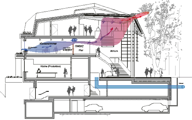 CO₂ gilt seit über 150 Jahren als Maßstab für gute Luft. Doch der Grenzwert von 1000 ppm ist nur mit hohem technischem Aufwand erreichbar, was besonders im Schulbau teure Gebäudetechnik erfordert. Deshalb gewinnen natürliche Lüftungskonzepte an Bedeutung, die schadstoffarme Materialien, einfache Bedienung, Nutzerverantwortung und auch Kostenvorteile vereinen.